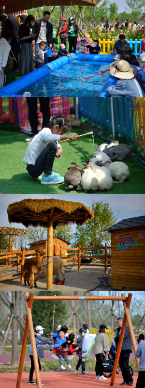 園區(qū)新設了樂沙園、無動力樂園、考古樂園等兒童游戲區(qū),可供小朋友們滑滑梯、蕩秋千、玩沙坑,還可以乘坐小火車,玩撈魚游戲,投喂羊駝、兔子等小動物,在帳篷營地享受親近自然的美好時光。