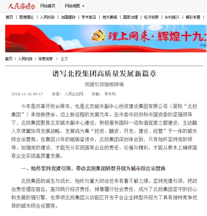 今年是改革開放40周年,也是北京城市副中心投資建設(shè)集團(tuán)有限公司(簡稱“北投集團(tuán)”)承擔(dān)新使命、邁上新征程的發(fā)展元年。在市委市政府和市國資委的堅強(qiáng)領(lǐng)導(dǎo)下,北投集團(tuán)聚焦北京城市副中心建設(shè),積極服務(wù)國際一流和諧宜居之都建設(shè),主動融入京津冀協(xié)同發(fā)展戰(zhàn)略,發(fā)展成為集“投資、融資、開發(fā)、建設(shè)、經(jīng)營”于一體的城市綜合運(yùn)營商。在集團(tuán)15年的砥礪奮進(jìn)中,北投集團(tuán)深刻體會到,只有始終堅持黨的領(lǐng)導(dǎo)、加強(qiáng)黨的建設(shè),才能充分實(shí)現(xiàn)國有企業(yè)的責(zé)任、價值與精彩,才能從根本上確保國有企業(yè)實(shí)現(xiàn)高質(zhì)量發(fā)展。