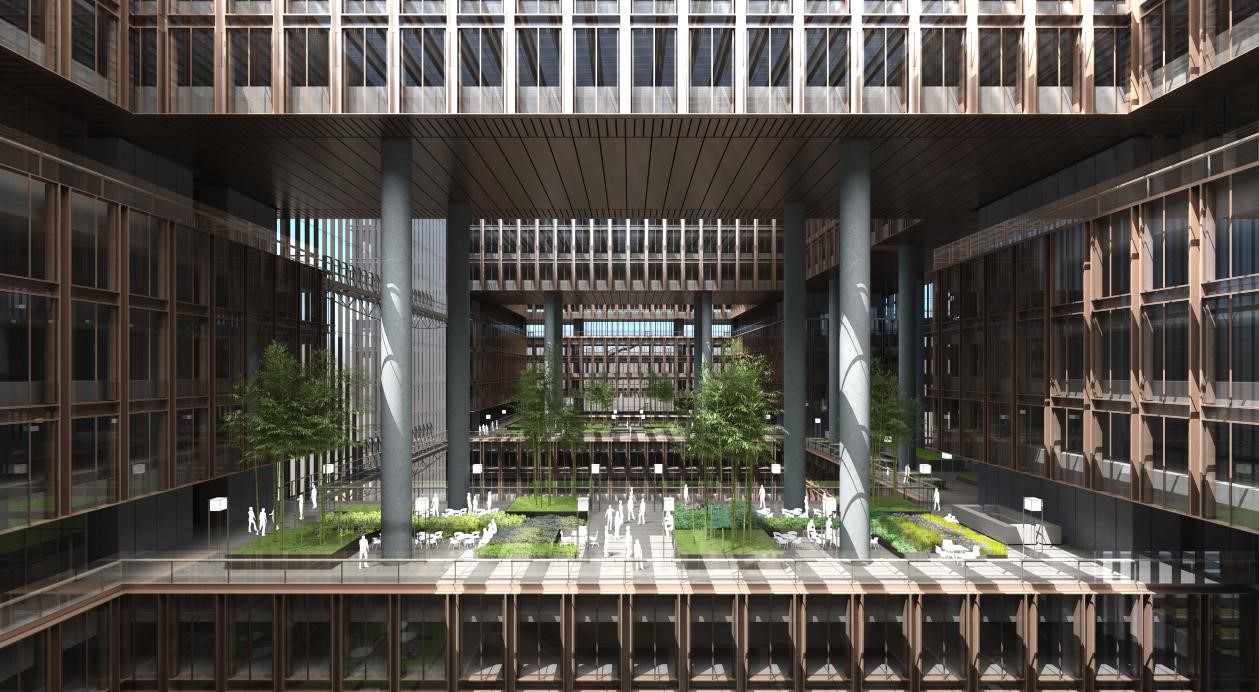 80米高的挑空大廳、7個(gè)采光中庭,使亞洲金融大廈內(nèi)所有工作區(qū)能享受最為均衡的自然采光和開闊視野空間;10處空中花園,分別種植熱帶、亞熱帶植物等,營造兼具藝術(shù)性和實(shí)用性的綠色多元復(fù)合活力商務(wù)空間;雙層內(nèi)呼吸式玻璃幕墻,配合智能電動(dòng)遮陽系統(tǒng)和通風(fēng)換氣系統(tǒng)等,在實(shí)現(xiàn)節(jié)能效果、提升隔聲性能的同時(shí),保障恒溫恒濕的辦公條件。