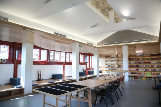 書店位于城市綠心森林公園北區(qū)驛站。室內(nèi)的空間設(shè)計(jì)上,用印有清代運(yùn)河全圖的曲線飄帶,打造出運(yùn)河流域地理造型,將“運(yùn)河文化”主題貫穿整個(gè)書店,讓“運(yùn)河概念”在室內(nèi)空間中“活”起來(lái),提升書店主題的場(chǎng)景感,重述古老運(yùn)河在新時(shí)代蘊(yùn)含的故事,為讀者提供更舒適的閱讀環(huán)境、更完善的閱讀服務(wù)、更全面的閱讀體驗(yàn)。