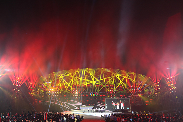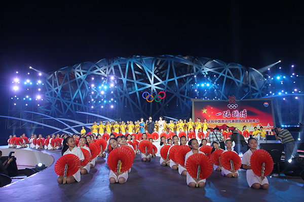 由國家體育總局和北京市政府主辦,北京電視臺(tái)承辦的“一路拼搏——慶祝中國奧運(yùn)代表團(tuán)凱旋主題晚會(huì)”于2012年9月3日晚在北京奧林匹公園中心區(qū)慶典廣場(chǎng)舉行。初秋的慶典廣場(chǎng)星光璀璨、明星云集,剛剛在第30屆倫敦夏季奧運(yùn)會(huì)上載譽(yù)而歸的林丹、易思玲、曹緣、陳一冰、張成龍、趙云蕾, 陳定、鄒市明、雷聲、李娜、蔡赟、傅海峰、張楠等13名奧運(yùn)冠軍集體亮相,不僅現(xiàn)場(chǎng)用精彩的才藝表演展現(xiàn)了奧運(yùn)冠軍的多才多藝,還講述了他們拼搏背后的成長故事,表達(dá)了對(duì)祖國和人民的感激之情。同時(shí),成龍、譚晶、戴玉強(qiáng)、莫華倫、羽泉、朗朗、胡彥斌、齊秦、薩頂頂、李宇春、林妙可等演藝界明星鼎力助陣,用精彩的文藝演出為奧運(yùn)冠軍慶功。